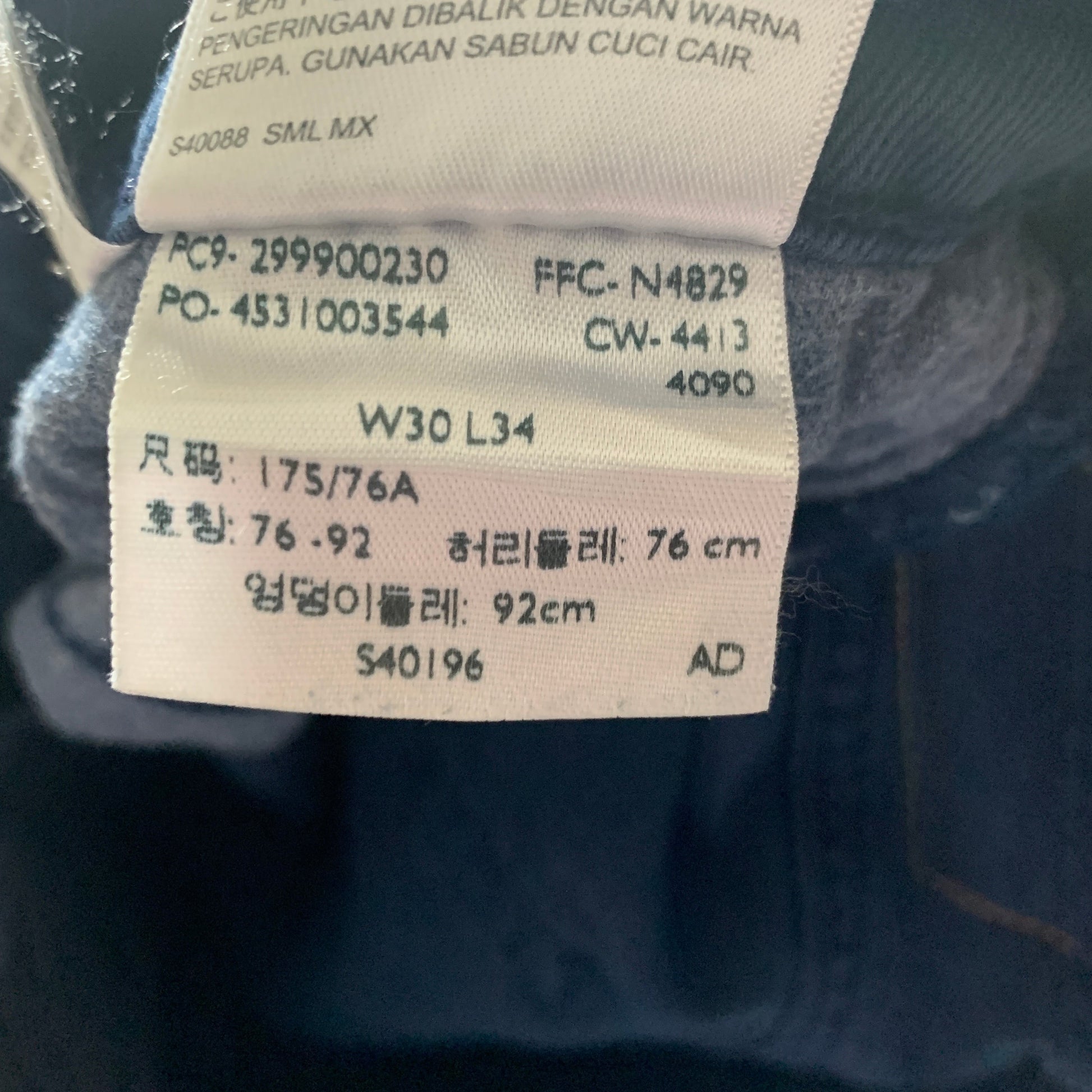 Some wear on the thigh and main tag size is printed in CM (pictured)