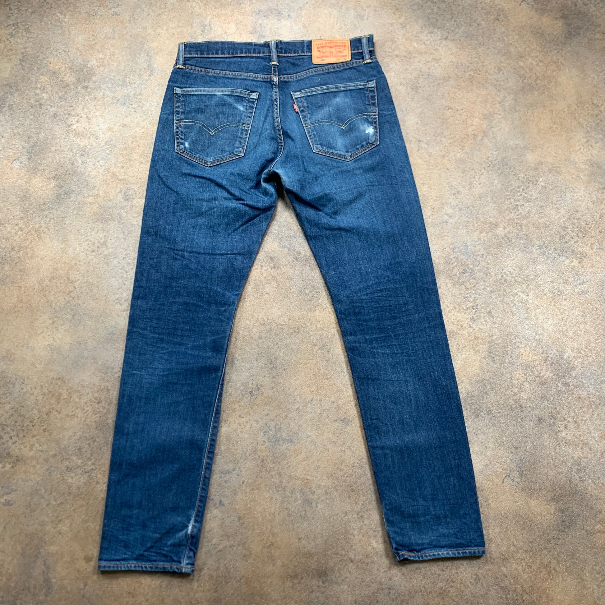 Light marks on the leg and fading on the back pocket (pictured)